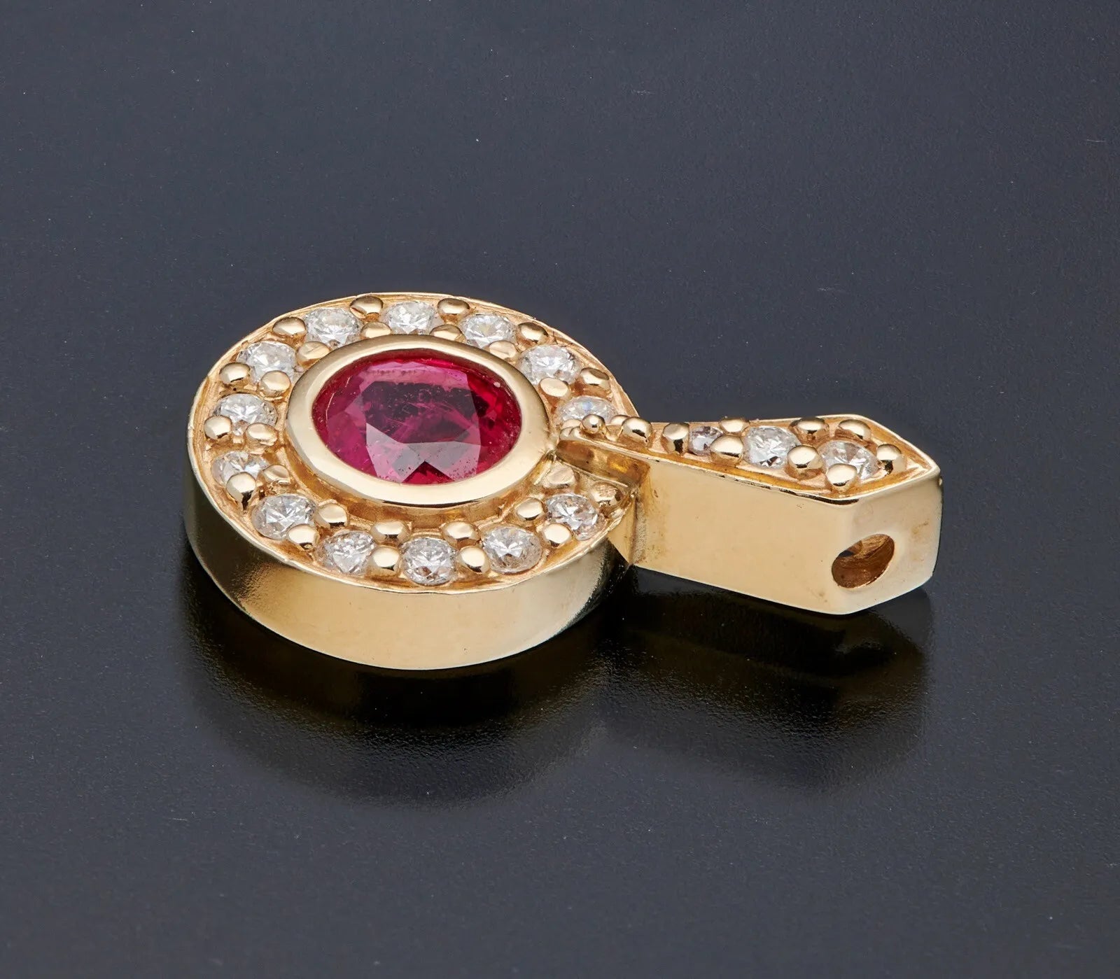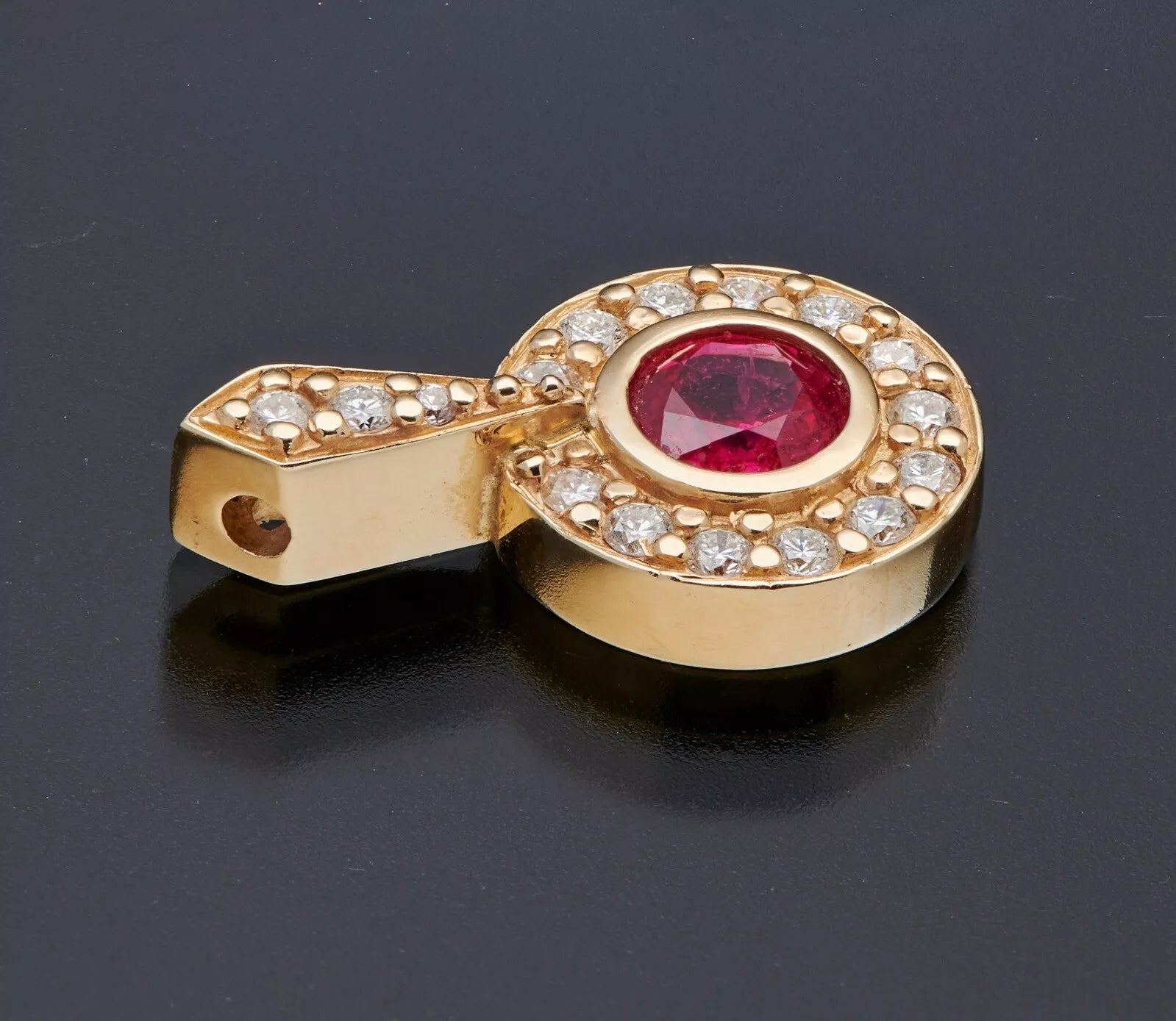 14K Yellow Gold .30cttw Diamonds .60Ct Natural Ruby Pendant Charm